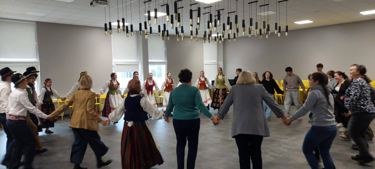 pasipuošę tautiniais kostiumais, įtraukė į bendrą ratelį ir šokius visus svečius. Po linksmybių –