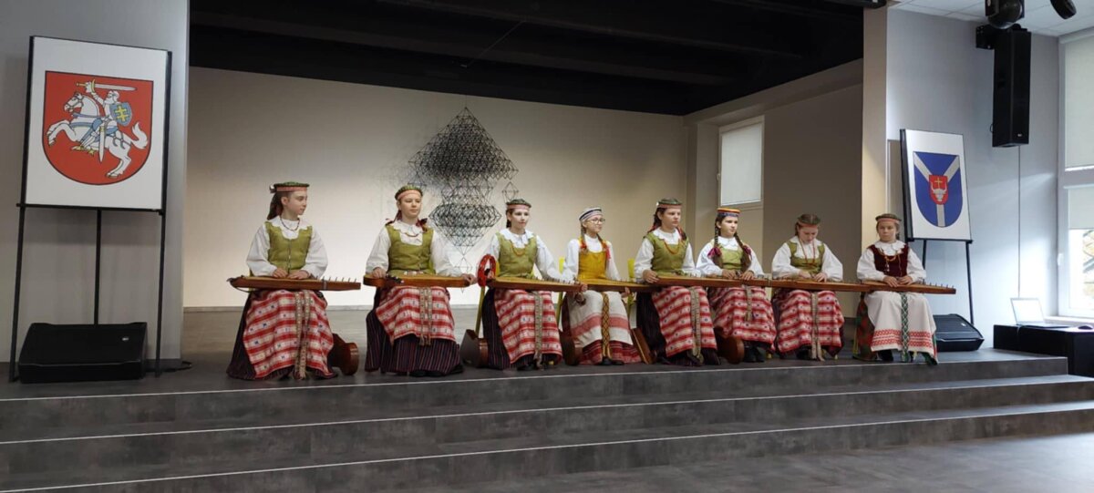 lietuvišką dvasią - jiems koncertavo kanklių būrelio (mokytoja Valė Dervinienė) mergaitės. Kanklės