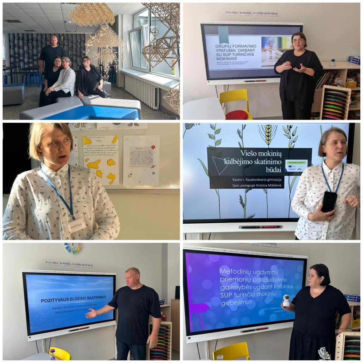 Specialioji pedagogė – logopedė Vaidilė Miliauskienė skaitė pranešimą „Grupių formavimo ypatumai dirbant su SUP turinčiais mokiniais“. Specialusis pedagogas Edmundas Brazas skaitė pranešimą „Pozityvaus elgesio skatinimas“. Logopedė Jūratė Brazienė skaitė pranešimą „Metodinių ugdymosi priemonių panaudojimo galimybės ugdant kalbinius SUP turinčių mokinių gebėjimus“.