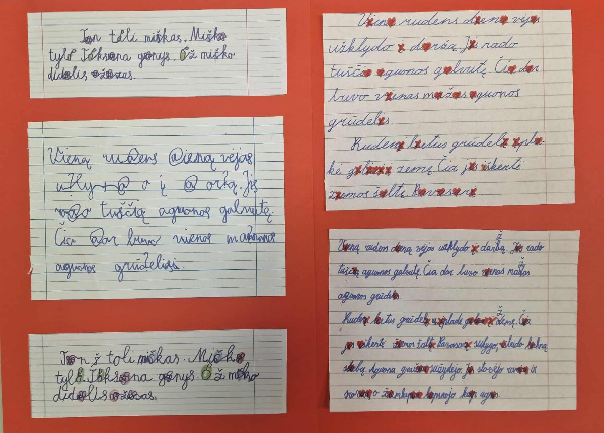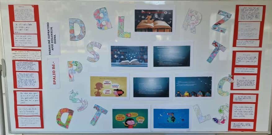 Spalio 1-8 dienomis mokytojai ir pagalbos mokiniui specialistai vedė temines pamokas apie disleksiją, rašė įdomiuosius diktantus, žiūrėjo filmą „Vaikų, turinčių disleksiją, psichosocialinis gyvenimas“. Spalio 8 dieną puošėsi raudonai. Raudona spalva reiškia rašiklį, kuriuo taisomos klaidos. Mokiniai, patiriantys skaitymo ir rašymo sunkumų (turintys disleksiją), dažnai klysta, todėl sąsiuviniuose raudonos spalvos yra daug. Šios iniciatyvos tikslas – padėti prisijaukinti raudoną spalvą, nebijoti klaidų, ieškoti pagalbos būdų jas šalinant.