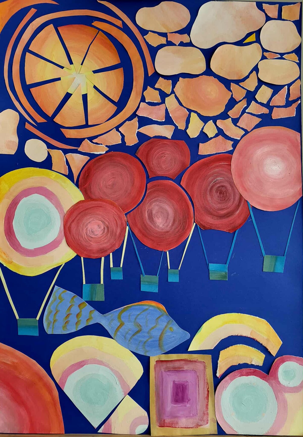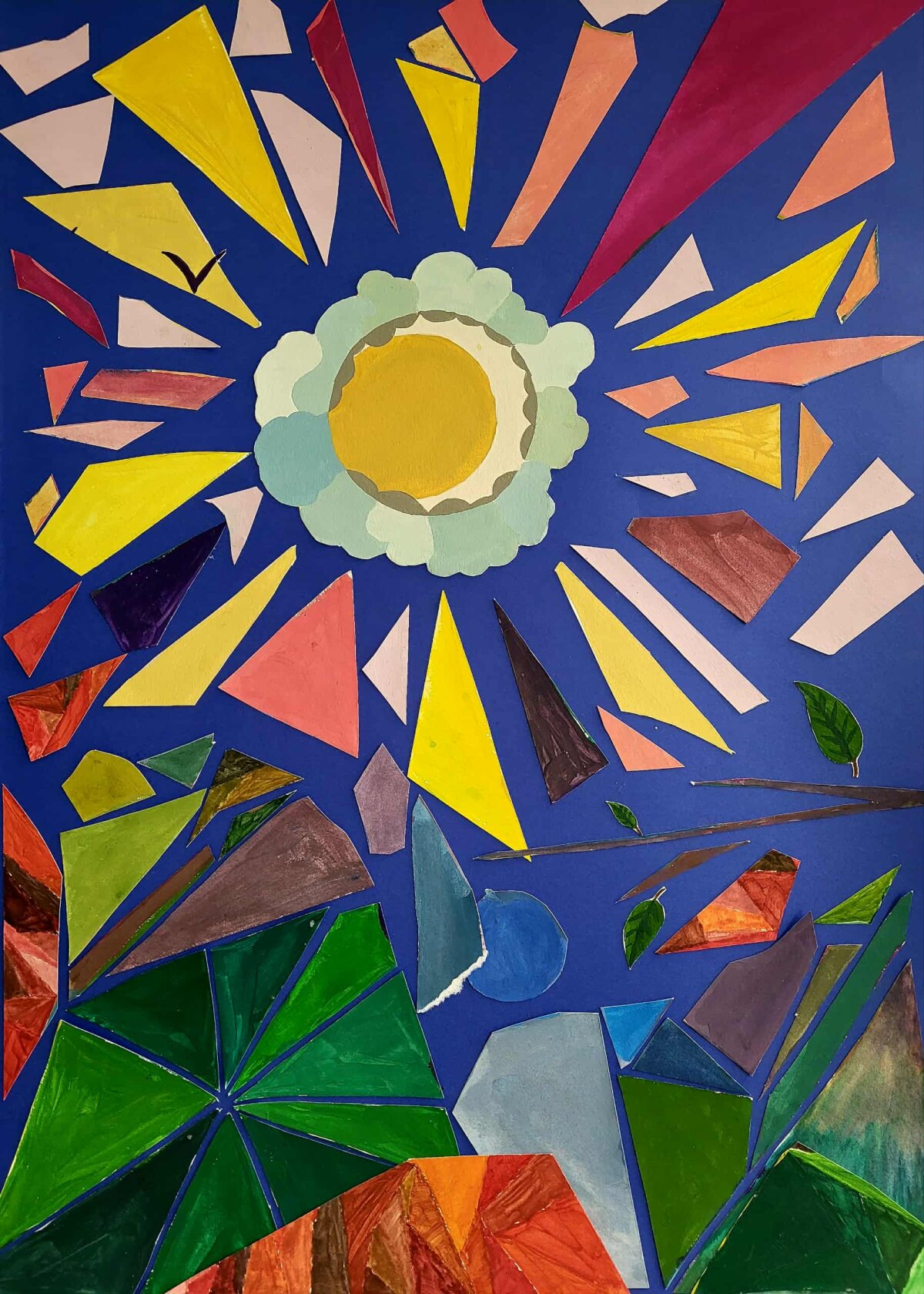 Dailė: darbas iš antrinių žaliavų - "Mandalą" ir „Draugystės mozaika“ iš popierius skiaučių.