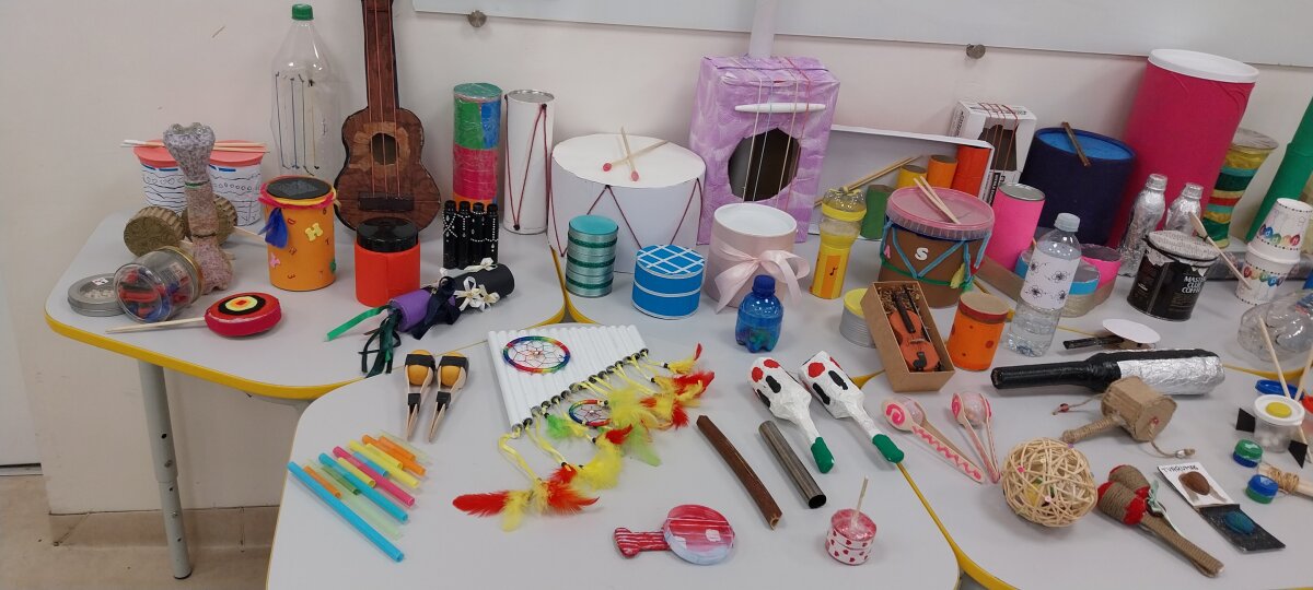 Muzikos pamokose vyko individuali kūrybinė veikla ,,Muzikos instrumentai iš antrinių žaliavų“.