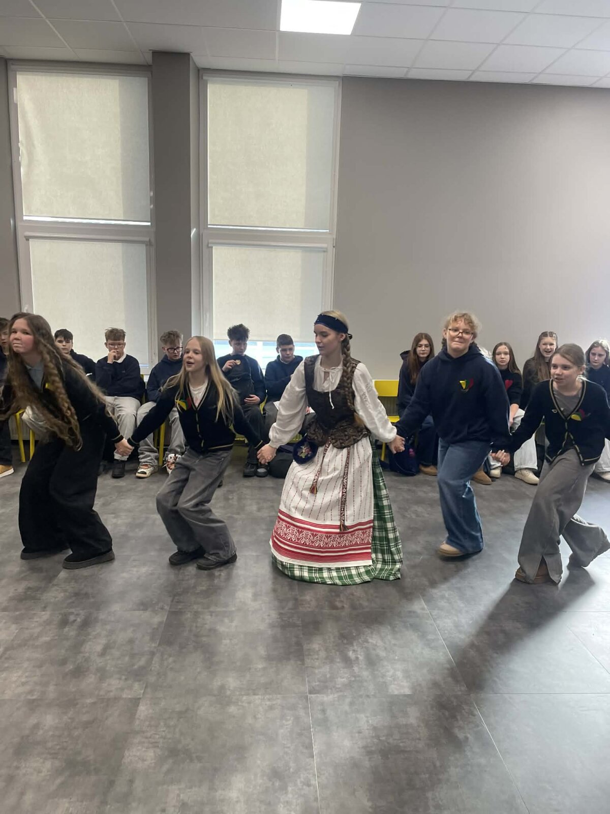Vasario 9 dieną progimnazijoje prasidėjo projektas „Vasario 16-oji – Lietuvos gimtadienis“. Nuo ankstyvo ryto fojė skambėjo lietuvių liaudies dainos, o per 3-4 pamokas etninės kultūros būrelio nariai ir visi 8a klasės mokiniai sukvietė į renginių salę 5b, 5e, 6e, 7a, 7b, 7c, 7d klasių moksleivius į netradicines pamokas „Tautos dvasia: etninė kultūra ir Vasario 16-oji“. Mokiniai paklausė kanklių skambesio, liaudies dainų ir patys įsitraukė į tradicinių šokių sūkurį, ratelius, minė mįsles, susipažino su tautinio kostiumo ypatumais. Tradicinė kultūra – tai mūsų tapatybės ženklas, mūsų turtas, tad turime ją pažinti, puoselėti, ji turi tapti mūsų gyvenimo dalimi – tikėkimės, kad taip ir bus, ir meilė savajai kultūrai įsižiebs ne vienoje širdyje.