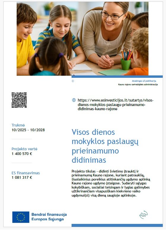 Projektas „Visos dienos mokyklos paslaugų prieinamumo didinimas Kauno rajone“.